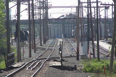 ![]() Entering Shops from the west was the end of C.T.C. The branch to the south leads to the SouthShore Freight line (former Nickel Plate Line and most recently Norfolk Southern) to Kingsbury. |