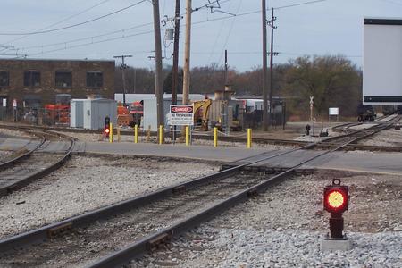![]() The diamond from the north. The track to the left with the boxcar on it is the connection between the CSS South Harbor Yard to NICTD's main line. |