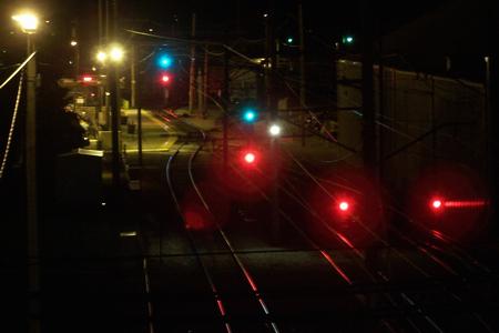 ![]() This night photo highlights the signals set for a westbound train arriving from South Bend. Main line signals are "Clear" to allow the train to pass. |