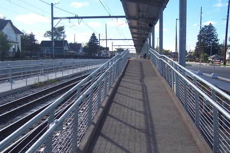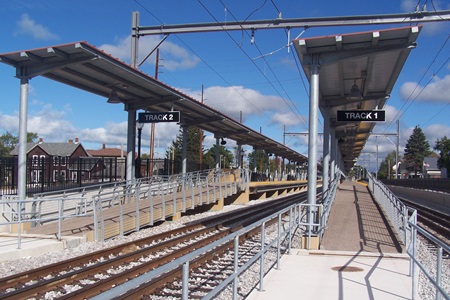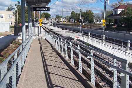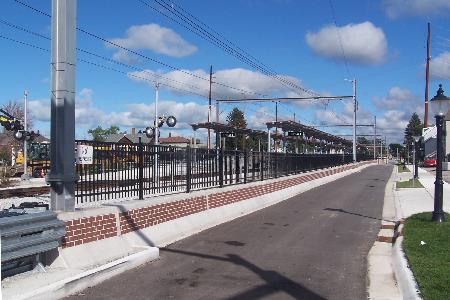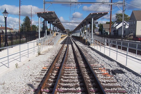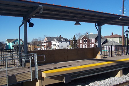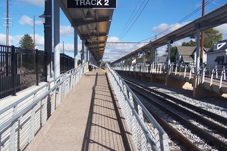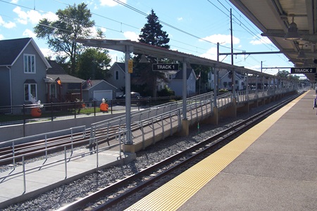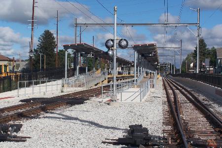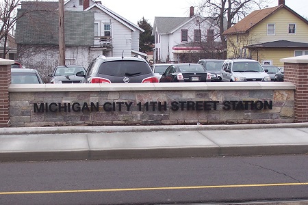 Michigan City 11th St StopThe historic station on 11th St between Franklin St and Spring St has been a part of the South Shore since the first trains ran. Many changes have occurred at 11th St over the year. Originally there was a large station building with a bus barn for the South Shore bus service. The bus barn was torn down and became a passenger parking lot. The original station building closed in 1987 and remained boarded up until it was torn down as part of the Double Track Nortwest Indiana project. (The historic facade was saved and will be part of the new station building structure.) Over the years some improvements were made including "streetscape" work done by the city.The double track project is the largest change in Michigan City in over 100 years. NICTD reconstructed the 11th St corridor providing a separated lane for eastbound traffic and two main tracks stretching from near Michigan Ave all the way to Gary (where they connect to the existing double track to Chicago). High level platforms and gautlets create a 21st Century railroad in the historic corridor. With the opening of the double track the 11th St station resumes the position of being the primary station for Michigan City with many weekday trains not stopping at Carroll Ave / Shops. |