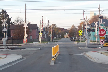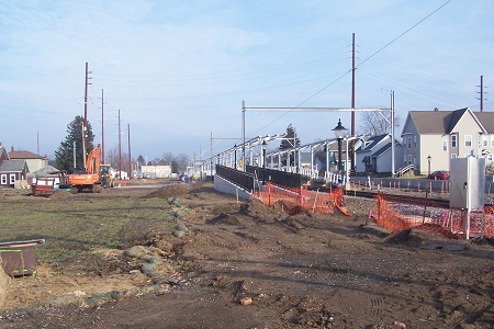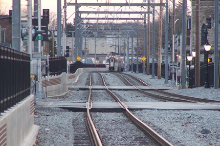 In 2022 NICTD ended street running in Michigan City. The westbound lane of 11th St became track 2. The eastbound lane of 11th St remains as a single lane road but is physically separated from the tracks. Several options were studied including realigning the track to the first row of properties south of 11th St and moving the 11th St Stop to a new station one block to the west with an 800 car parking lot. Route selection considered three basic paths - just south of the current 11th St, through southern Michigan City following the CSX line and north close to the lakefront. The facade of the historic station building was saved and stored and will become part of the facade of the new station building. | |