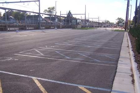 | The new surface parking lot on the north side of the platform between Pine and Cedar St. The lot is accessible from Spring St. The Pine St entrance is closed for construction of the parking structure. (Oct 2023) | |