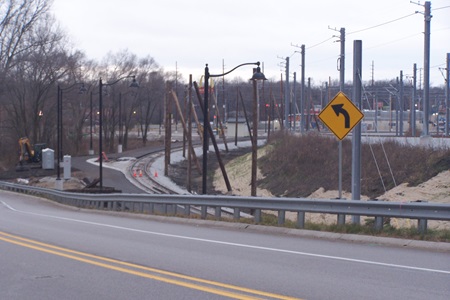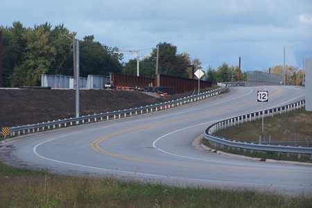 A second bridge (on the right of the two bridges) was added over the CSX main track east of the station. The picture on the left also shows the new S curve in US 12 as it goes around the east end of the storage track then turns south to meet US 20 at a T intersection.