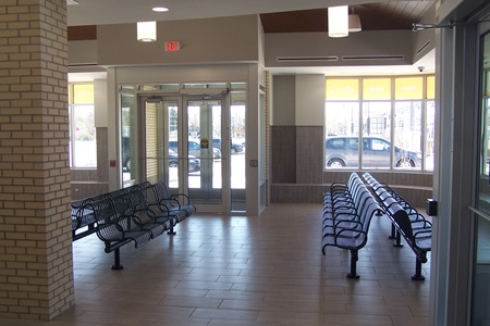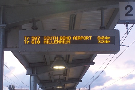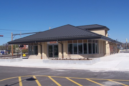 This modern structure was on the east end of Gary. The building featured a waiting area with clear view of the trains. A single low level platform was available.