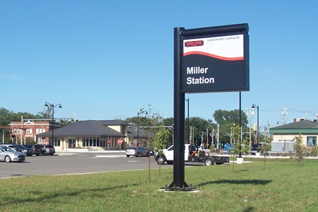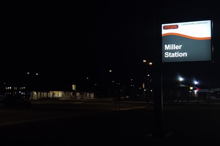The station at Miller on the east side of Gary has grown from being a simple flag stop to being a major station on the South Shore line. A station building with a small enclosed shelter area was built in 1998 along the single track line. The building was replaced in 2024 by a modern station building serving a new double track high platform station with gauntlets. A new daytime passenger car storage yard is available to the east.