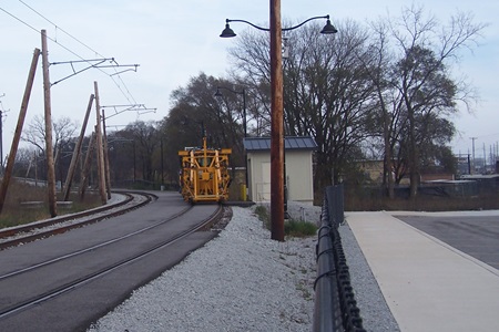 A connection track is available at the station for freight trains connecting between the South Shore and the CSX freight line in Miller. |