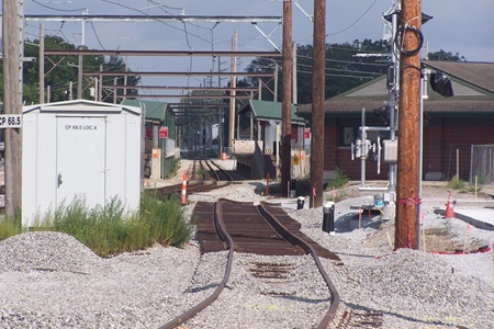 Looking east down the new track 1 where it was being connected to the track at the station. (October 2024)