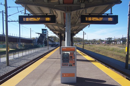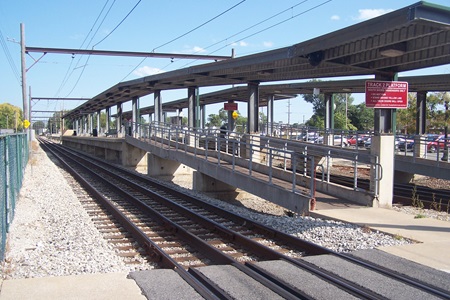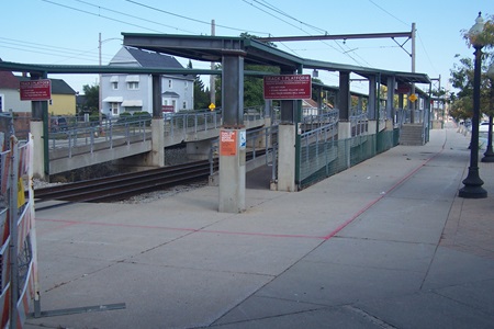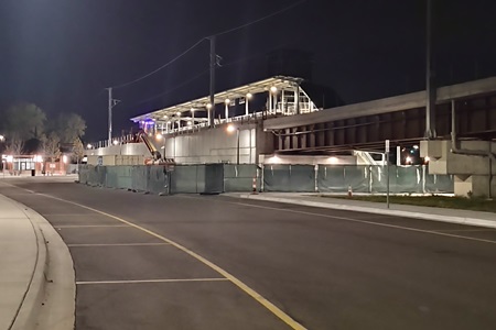 Looking west from Sheffield Ave at the station platform. (November 2024)