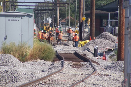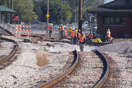 Crews work on removing the gauntlet at the east end of track 1. (October 2024)