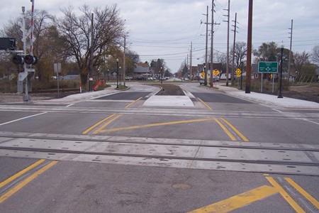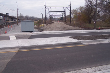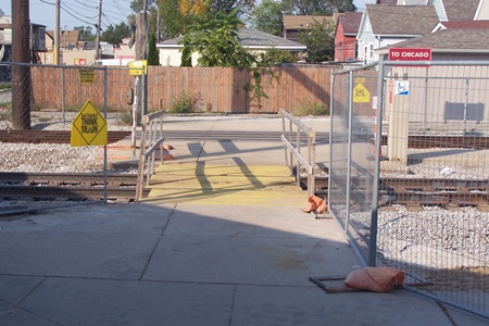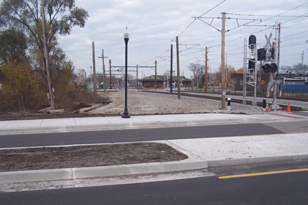 The old crossing at Sheffield Ave has been removed with the new crossing in the foreground. (November 2024)