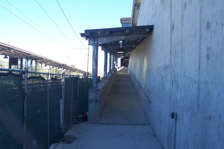 | Active crossing protection is provided for passengers crossing the track 1 to reach the center platform. Temporary fences were installed to prevent passengers from crossing the tracks other than at the crossings. (Railings had not yet been installed at the time of these pictuers.) |