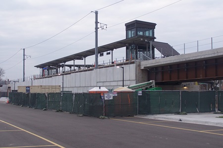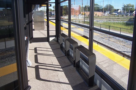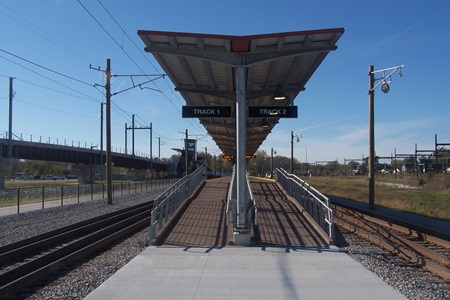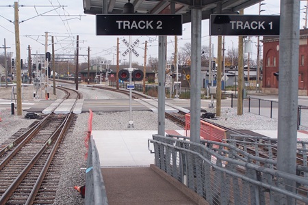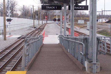 This was the South Shore Line's first gauntlet station. Additional gauntlet style stations have been built in East Chicago and Hegewisch and are planned (with no target dates set) for Gary Metro Center and Michigan City 11th St.