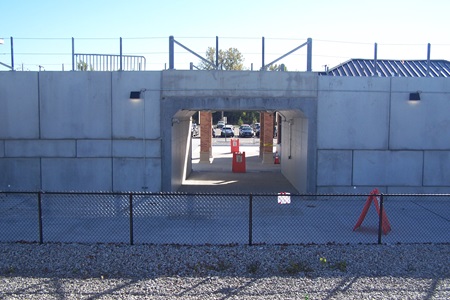 The tunnel under the Monon Corridor track connecting the parking lot to the platform. (October 2024)