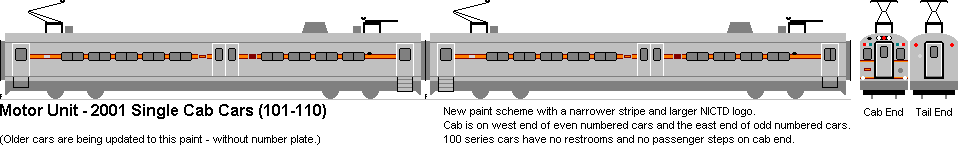 NICTD is leasing the 26 METRA cars for 15 years starting in 2023. The cars have been reconditioned and carry NICTD logos.