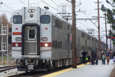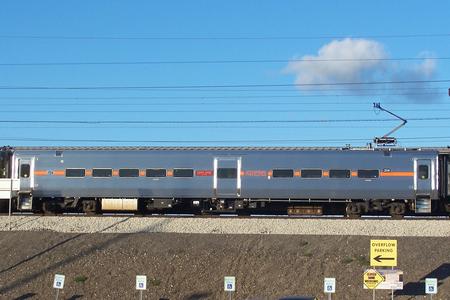 Car 314 leads a westbound train at Dune Park. Cars 301-314 were delivered in 2008-2009 and put into revenue service in 2009. These cars are based on Chicago's Metra Electric District rail cars delivered in 2005. These are single cab gallery style cars. Each car is divided by a central vestibule and have a vestibule at the non-cab end of the car with traps for low level platforms. All 14 cars are identical with odd number cars facing east and even numbered cars (as shown above) turned to face west. Trains may be built of two to six cars. Gallery cars cannot be mixed with single level cars. | ||