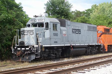 NICD 1000 stands ready east of Miller with CSS 2006. NICTD owns one GP40 diesel engine which is used for maintenance of way hauling (pulling hoppers of gravel and other supplies) and rescuing passenger trains when there are problems with the catenary system. (NICTD also borrows the SouthShore Freight line's locomotives for rescue runs.) | NICTD 1000 and 1001